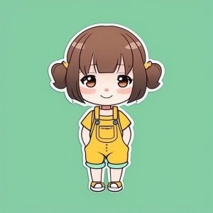 Minimalist Kawaii Chibi Full Body Anime Girl in Orange Hoodie