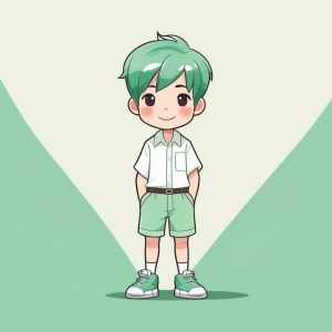 Minimalist Kawaii Chibi Girl with Dual Color Ponytails