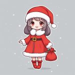 Minimalist Kawaii Chibi Anime Santa Girl Full Body Illustration