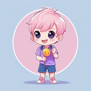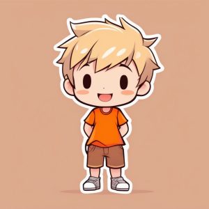 Minimalist Kawaii Chibi Anime Boy with Backpack