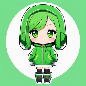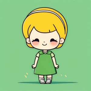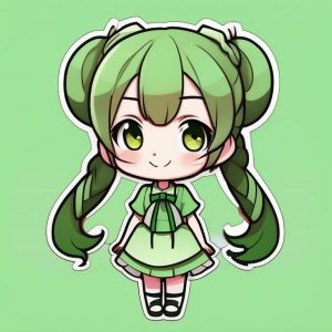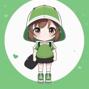 Minimalist Kawaii Chibi Short-Haired Girl Full Body, Mint Green Background
