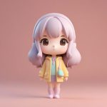 AI art prompt English:Minimalist Kawaii Chibi Retro Roller Skater Clay Sculpture 3D Image