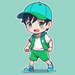 Minimalist Kawaii Chibi Boy: Orange Sports Outfit