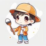 一个极简卡哇伊Q版动漫男孩,全身照,穿着橙色运动服,大而可爱的眼睛,小嘴巴,圆头,站在纯白色背景前,细黑描边,纯色无阴影,干净简单的设计,俏皮的姿势,无其他细节。