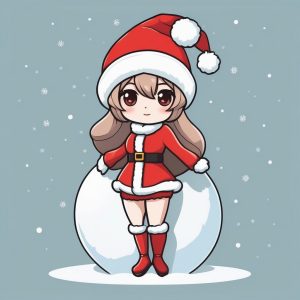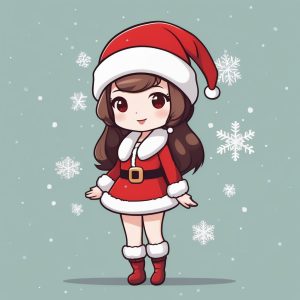 Minimalist Kawaii Chibi Santa Anime Girl Gaze Upwards