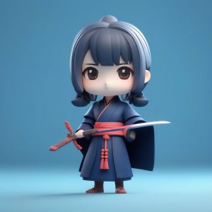 AI art prompt English – Shy Chibi Boy Blushing on Solid Azure Blue