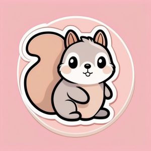 A cute chibi-style single squirrel, rendered in minimalist flat cartoon, with a solid soft orange background. Bold outlines, flat colors, no textures, simple round shapes define its appearance.