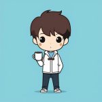 Minimalist Kawaii Chibi Anime Boy as Little Painter – White Minimalist Background