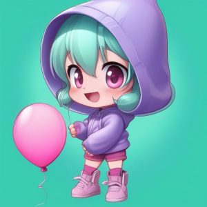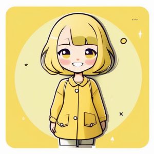 Minimalist Kawaii Chibi Girl Making a Funny Face on Lemon Yellow Background