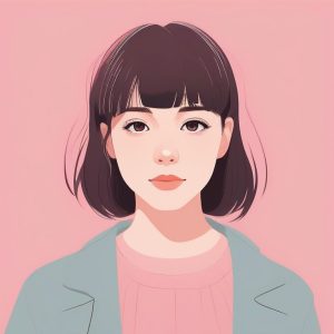 Minimalist Blue-haired Girl Portrait with White Solid Background