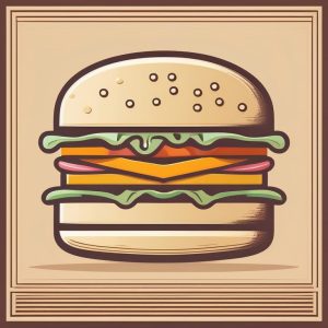 Single hamburger in pop art minimalist style, flat layered colors, no texture, solid bright background, clean rounded shapes.