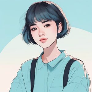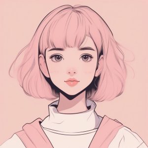 AI art prompt English – Minimalist Macaron Girl Portrait: Cel-Shading and Thick Lineart