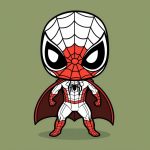 Minimalist Chibi Miles Spider-Man Comic Style on Green Background