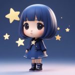 AI绘画提示词中文:极简盲盒风格卡哇伊Q版粉发兔耳女孩