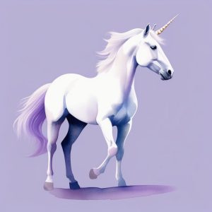 A purple unicorn head in minimalist flat art, with a simple curved horn, shown against a clean solid lavender background. No eye or mouth, only shape and magical color.