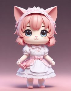 AI绘画提示词中文 – 极简女仆:涂鸦风女仆装Q版少女,粉红背景提示词