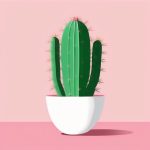 A minimalist flat design illustration of a cactus standing alone in the center of a clean solid light blue background. The cactus is drawn with basic shapes, smooth curves, and a muted green color. There are no shadows or gradients, and the illustration is crisp and simple, conveying calmness and focus. The visual style is inspired by modern flat conceptual art.