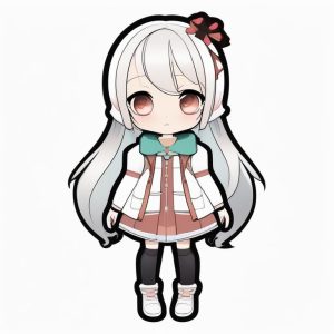 A minimalist full body chibi anime girl wearing a simple all-white outfit stands on a plain pure white background, ultra-simplified round head, big innocent black eyes, little nose and mouth, no accessories or detail, clean bold outlines only, extremely pure and adorable.