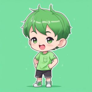 Minimalist Chibi Anime Boy in Mint Green Shirt Fresh Image