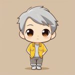 Minimalist Chibi Orange-haired Boy with Childlike Freshness
