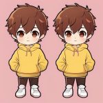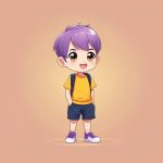 Minimalist Chibi Anime Boy with Cute Umbrella