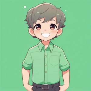 Minimalist Chibi Anime Boy in Green T-shirt