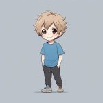 Minimalist Chibi Anime Girl with Green Tank Top and Short Hair