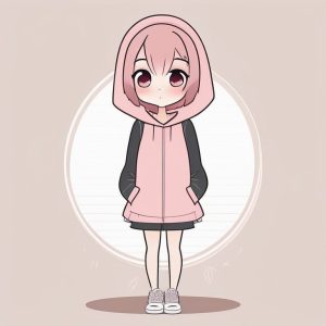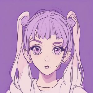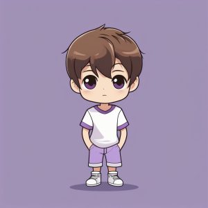 Minimalist Chibi Anime Girl Full Body – Purple Solid Color Background