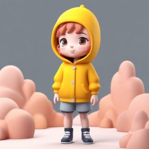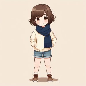 Minimalist Chibi Anime Girl in Grey Sweatshirt Playful Pose