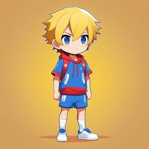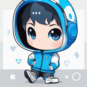 Minimalist Chibi Anime Sky Blue Short-haired Girl Sporty Style