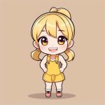 Minimalist chibi girl Short Hair Blue Dress Kawaii Illustration