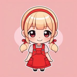 Minimalist Chibi Girl with Short Blonde Hair Sunny Style