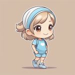 Minimalist chibi girl in Black Short Hair Cool Girl Style