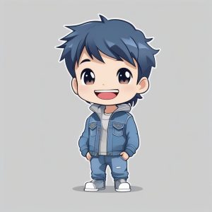 Minimalist Chibi Boy in Blue Shoes Full Body Anime