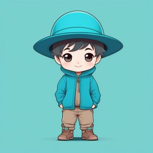 Minimalist Chibi Boy with Yellow Hat Simple Style