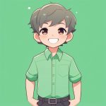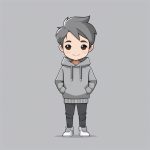 Minimalist Kawaii Boy in Orange Red Sweater Chibi Style