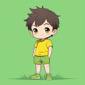 Minimalist Kawaii Chibi Boy in Yellow T-shirt and Shorts Summer Style
