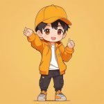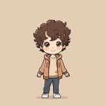 Minimalist Kawaii Chibi Boy in Denim Overalls