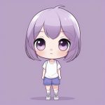 Minimalist Kawaii chibi girl with Purple Short Hair