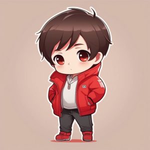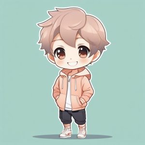 Minimalist Chibi Anime Boy with Blue Headphones Kawaii Style