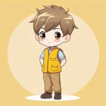 Minimalist Chibi Anime Boy with Blue Schoolbag Student Style