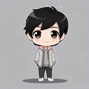 Minimalist Chibi Anime Boy with Blue Schoolbag Student Style