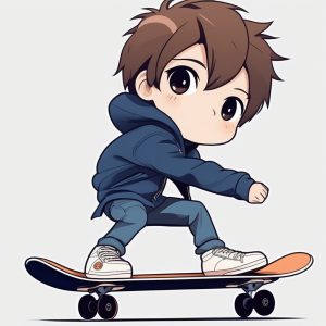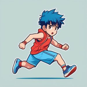 Minimalist Chibi Boy in Blue Sneakers Kawaii Style