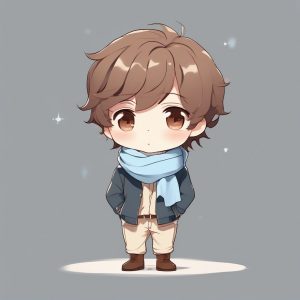 Minimalist Chibi Boy with Green Scarf Full Body