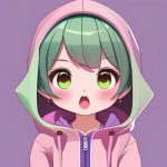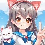 Minimalist chibi girl – Blonde Double Buns, Blue Dress, V-sign
