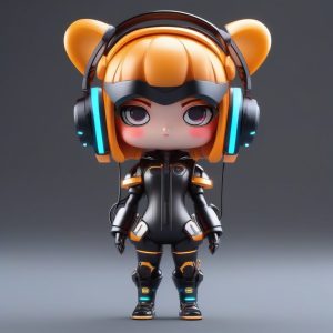 AI art prompt English:Minimalist Chibi Cyberpunk Girl, Neon Hair, C4D Lighting, Futuristic Style
