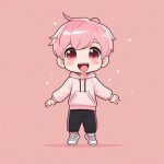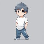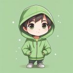 Minimalist Chibi Boy in Deep Purple Hoodie Cute Style