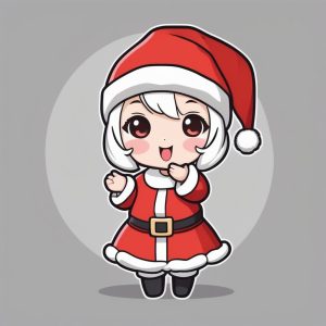 Minimalist Chibi Santa Claus Licking Candy Cane Illustration