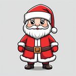 Minimalist anime chibi Santa girl, wearing a big fluffy Santa hat, full body, round face, small nose, simple design, smooth lines, flat solid colors, outlined in dark, no details or patterns, on a clean plain background, soft and charming look.