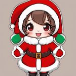 Minimalist Chibi Santa Hat Anime Girl Solid Color Illustration